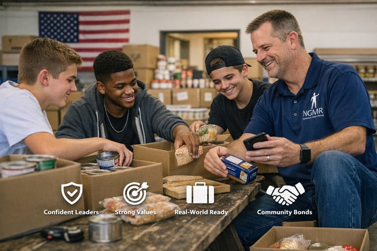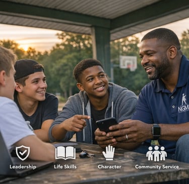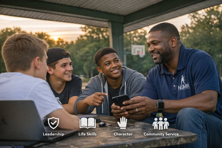 NGMR provides a 12‑month mentorship experience built around leadership, character, life skills, and community. Through monthly sessions, hands‑on workshops, and guided mentorship, young men learn how to: